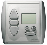 Chronis Comfort RTS Programador horario de pared. Permite programar un accionamiento de las persianas diferente para cada día de la semana. Incluye la función de simulación de presencia, para dar un plus de seguridad a la instalación en períodos de largas ausencias.