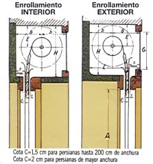 Accionamiento. Puede ser eléctrico, mediante cinta, manivela y varilla oscilante. En caso de ser eléctrico, se realiza mediante motor alojado en el eje, siendo posible lograr una completa automatización de la persiana: accionamiento desde diversos puntos, cierre centralizado, mando a distancia, etc., opcionalmente puede instalarse un dispositivo que permite el accionamiento de la persiana, si falla el suministro de fluido eléctrico.