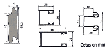 guías de aluminio extruido con burletes de oscurecimiento y cierre hermético.