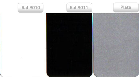 Colores disponibles para soportes, brazos y perfiles de su toldo Industrial Navarrete. Consúltenos si su toldo está disponible en uno de estos colores. Básicos: